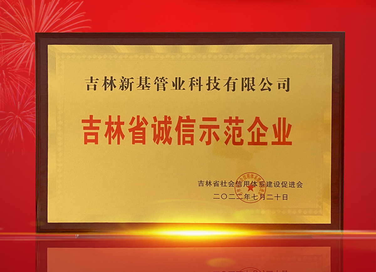 喜報(bào)丨新基管業(yè)再次榮獲"吉林省誠信示范企業(yè)"榮譽(yù)稱號(hào)